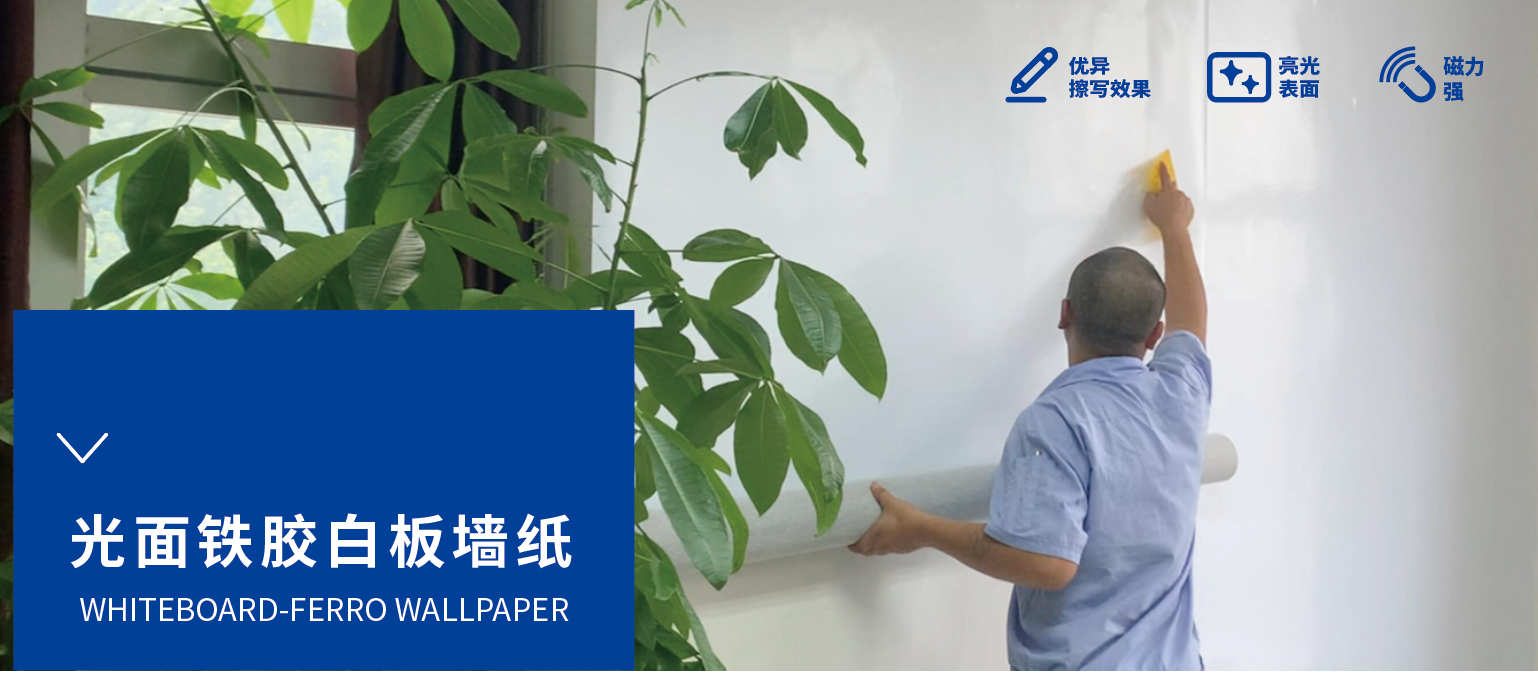 鐵膠白板的背面有一層墻紙襯底,與常規(guī)墻紙一樣安裝,可以接縫,做整墻白板非常方便。鐵膠白板墻紙的寬度達(dá)1.5M,長度不限,書寫效果優(yōu)異,表面耐候耐腐蝕,環(huán)保安全,并有多種表面效果的選擇。