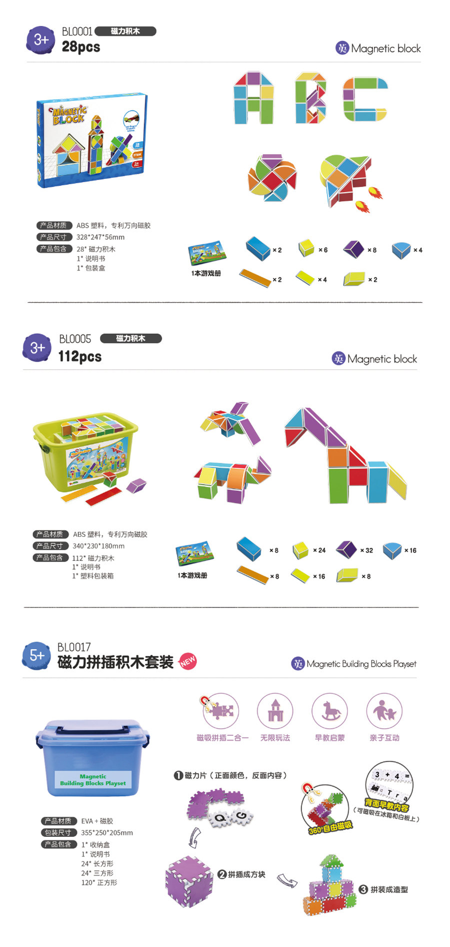 磁力積木是由我司專利萬向磁材質(zhì)制成,各個角度都可以相互吸附不挑正反面,易于拼搭。