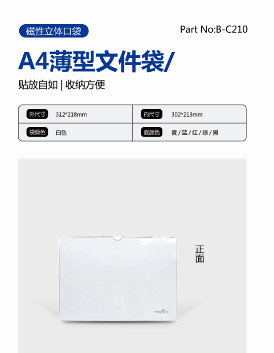 磁樂磁性文件袋,有A5,A4和A3尺寸,可以收納文件、照片、證書,磁力強,辦公生活井然有序。