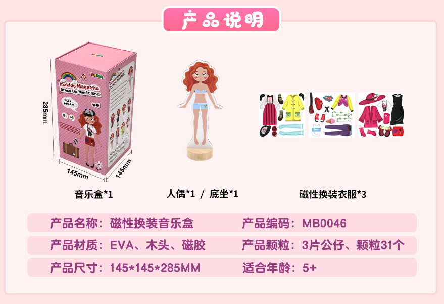 福磁力換裝音樂盒只為給你愛的感動,全新升級磁力游戲盒,可玩可聽、動手拼圖、磁吸換裝、自動旋轉(zhuǎn)、閃光調(diào)節(jié)的多元素、多功能音樂盒。