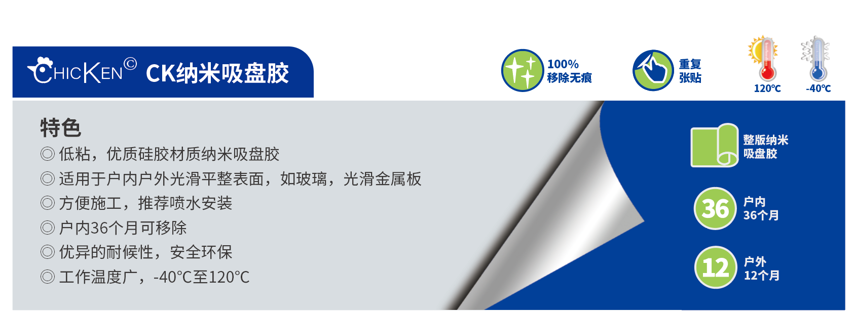 DCK點狀吸盤膠的膠面以點狀排布,安裝畫面時氣泡可以通過點狀氣槽自動排出,不用噴水,便利施工,提高效率。DCK點狀吸盤膠耐候性優(yōu)異,適合于戶內(nèi)外平滑表面。查看更多 >