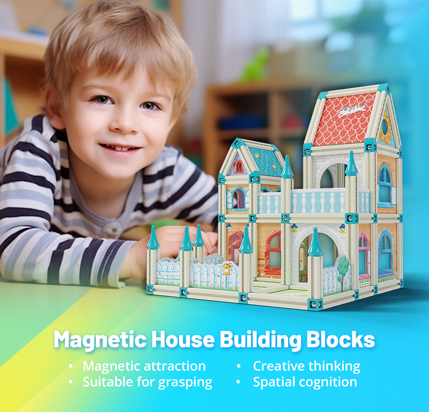 材質:ABS塑料,橡膠磁鐵 高級版:174件 產品編碼:BL0021 包含:174 件(126 個磁性部件、44 個裝飾板、2 個小人仔、2 個動物) 包裝尺寸:356*281.5*90mm