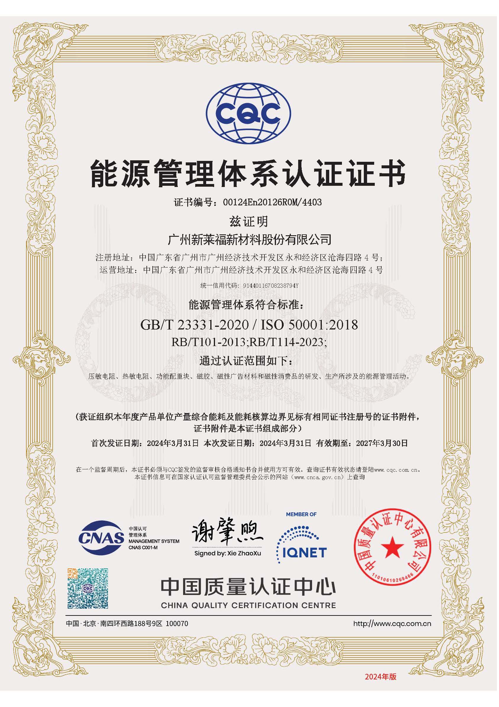 新萊福始終致力于節(jié)約能源、保護環(huán)境,積極推行能源管理體系。此次獲得能源管理體系認證,標志著公司能源管理工作已達到國際先進水平,公司在能源管理方面的規(guī)范化、制度化和科學化水平得到進一步提升。能源管理體系認證是國際通用的能源管理標準,對企業(yè)的能源管理活動進行規(guī)范和評價。認證要求企業(yè)建立、實施和保持能源管理體系,并持續(xù)改進能源績效。